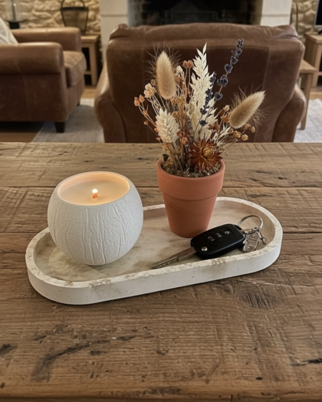Esculpida em concreto artesanal, a Terra Nobre revela veios marmorizados que nunca se repetem.