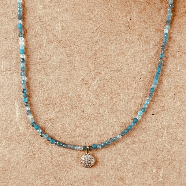 Choker 36cm com Cristal de Rocha Apatita e pingente de micro zircônia branca em banho de ouro 18k